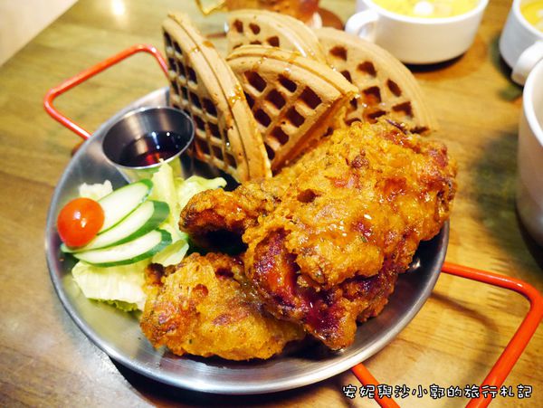 第一次看到鬆餅和炸雞的搭配,安妮還愣了一下想說怎麼吃呢!