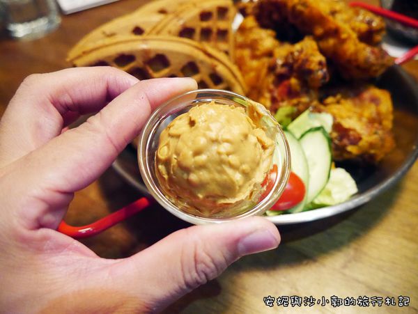 炸雞+鬆餅已經夠罪惡了,想不到老闆又推薦加花生醬。
