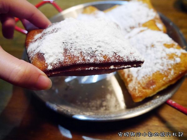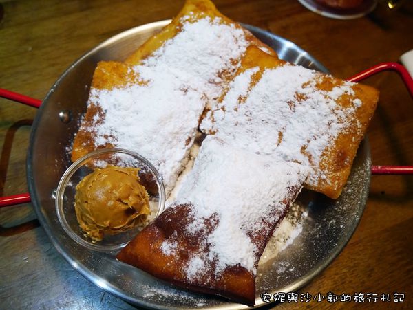 甜點我們點的是法式貝涅餅,加價30元可選擇搭配沾醬野莓/花生醬/巧克力,三選一。