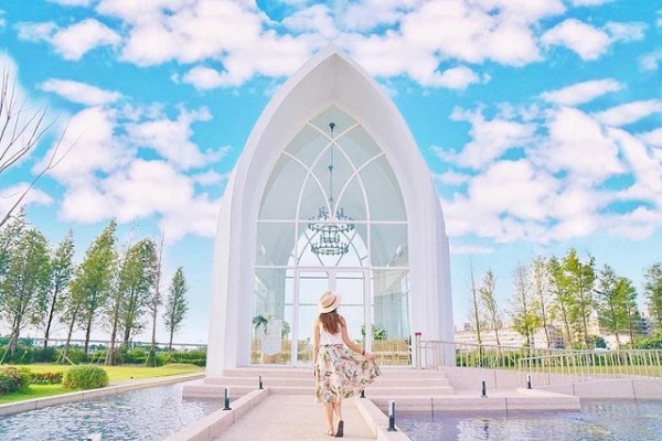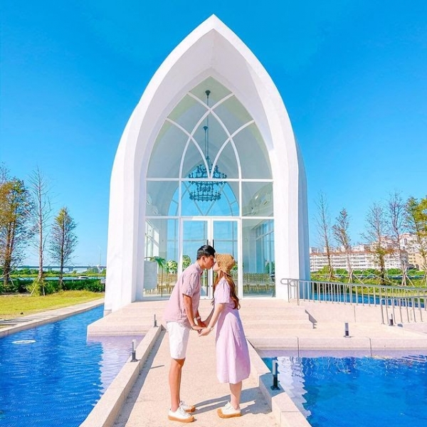 位於皇家薇庭 Royal Wedding 婚宴會館旁的純白水上教堂,為一處開放式景點,是少之又少、免門票就能拍到浪漫的水晶教堂,坐落在湖面中央又更有氣氛,趁著周末找另一伴來拍照吧!