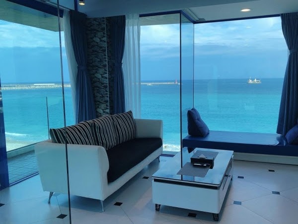 來到窗邊還有個延伸沙發區,無論是想要坐著、躺著或是趴著都可以,讓你靜靜地看海放空,這才是度假的真諦啊!