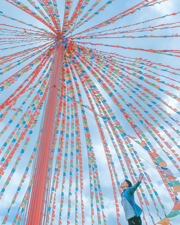 IG隱藏版打卡秘境!全台最高五彩風馬旗隨風飄揚超壯觀,加上綠色大草坪及異國風情建築,不僅好玩又好拍,讓你免出國就能秒飛西藏大拍異國照啦!