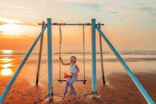 戶外還擁有全台最大「天空之鏡」!在這片絕美私人海灘上,一邊盪鞦韆一邊看蔚藍大海,加上海水只到腳踝而已,宛如在海中凌波微步一般,真是浪漫又愜意!