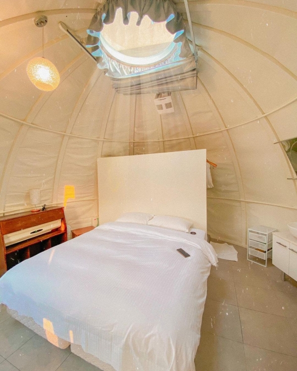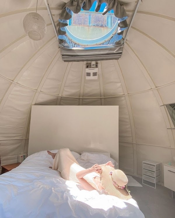園區最吸睛的就是這座「水上星空帳篷」,純白的外觀可愛又好拍,且帳篷內就能欣賞絕美湖景,夜晚搭配燈光更是浪漫,根本是情侶約會勝地啊!