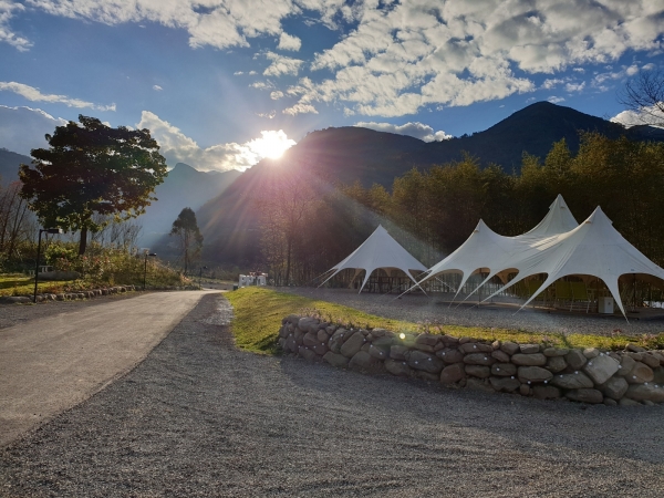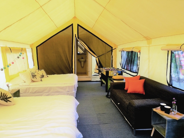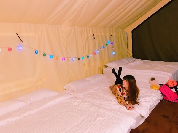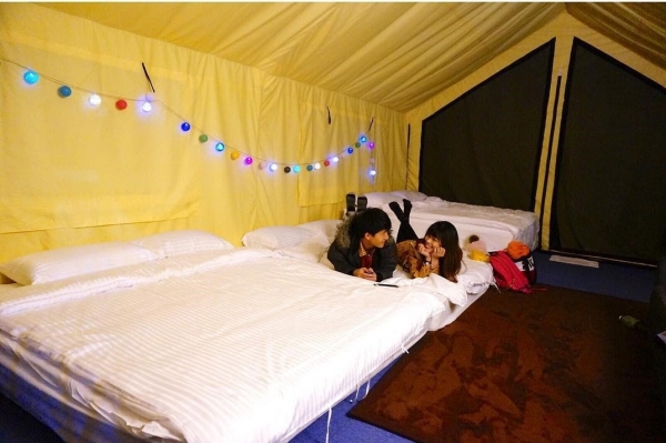 分為雙人房和四人房,超寬敞空間,還附有獨立坐式馬桶以及乾濕分離淋浴間,夜晚內急也不用跑出帳篷找廁所,非常方便!