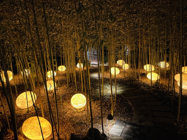 穿梭在風呂小徑中,看著竹葉婆娑搖曳著,溫暖的燈光從蛋殼中透出,這裡的氛圍是如此的幽靜,彷彿再走下去,便會抵達無人知曉的翩翩國度!