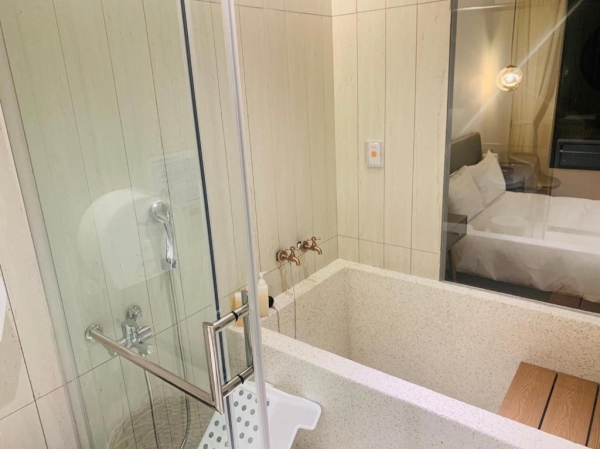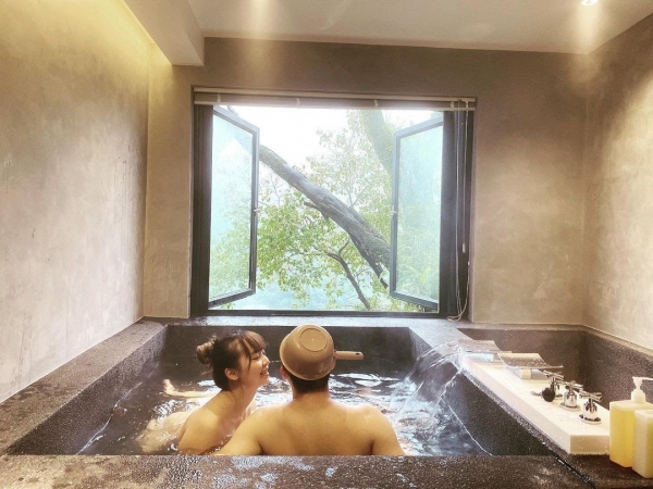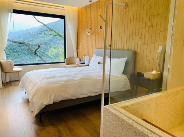 提供雙人房以及四人房,可以選擇過夜住宿或者休息,休息時間為2小,空間高挑寬敞,純白色調為基底,整體氣氛溫馨舒適,房內皆有大片的景觀窗可賞無敵山景,房內衛浴也非常寬敞,泡湯池也夠大,整個家庭泡進去都不是問題!
