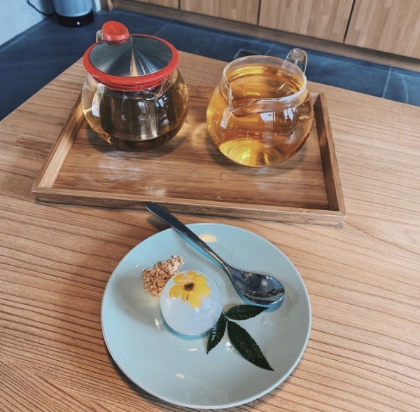 迎賓的下午茶,也很精緻!這家民宿小編就直接先加入口袋名單了!被精緻的甜點收買,晶瑩剔透的水信玄餅,是民宿精心製作的!使用南投埔里在地的食用花,搭配黑糖漿及黃豆粉,根本就是藝術品!