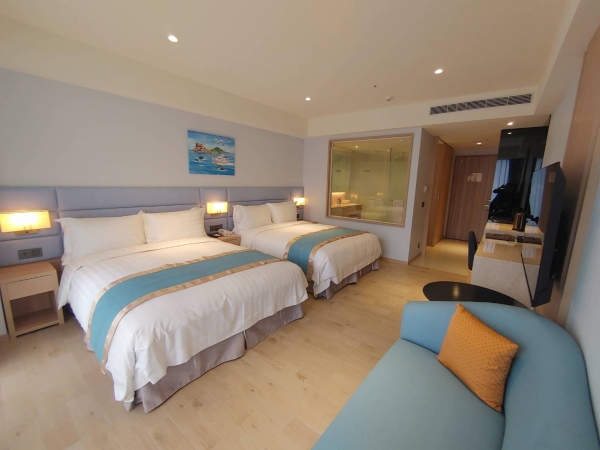 全館共有135間客房,主要可分為山嵐客房與海藍客房。山嵐客房可以欣賞雲霧繚繞的山間美景,而海藍客房可以遠眺龜山島、烏石漁港風景同時,還可以欣賞龜山朝日、巃嶺夕煙、西峰爽氣、石港春帆四大頭城絕美景致。