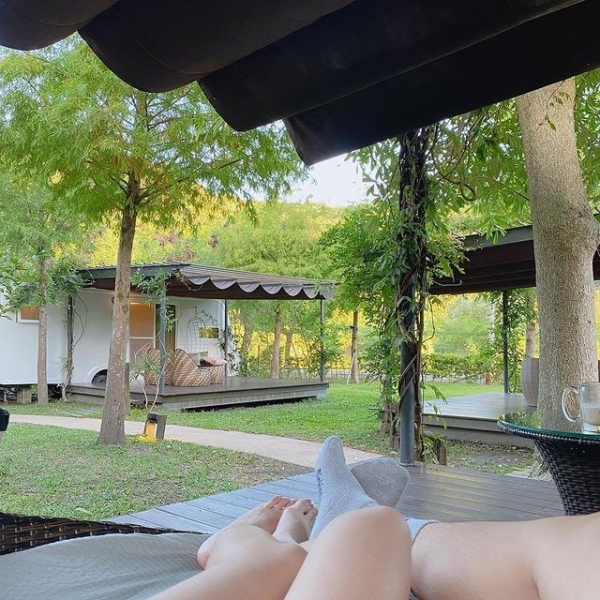 每台露營車皆有獨立的遮陽木棧平台,還附有編織鞦韆吊椅,怎麼拍都夢幻,如果想要攜帶毛小孩一起旅遊的話,記得要先預約寵物房型喔!!不然毛小孩是無法入場的喔!