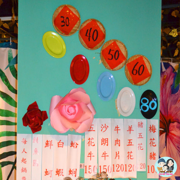 火鍋料盤:白盤60元、藍盤50元、紅盤40元、綠盤30元、黑盤80元