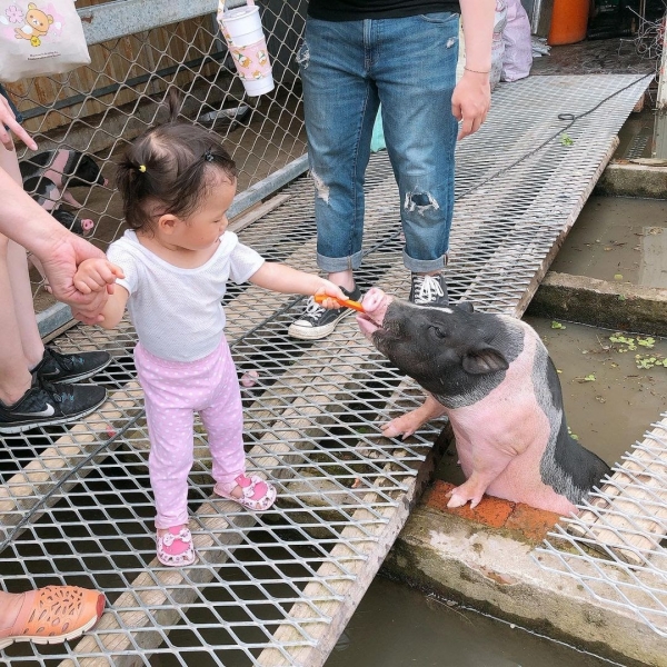 隱身於桃園大溪一座親子農場,園內不僅可以餵食梅花鹿、迷你豬及兔子等等小動物,更能玩水、體驗摸蜆及釣蝦釣魚,另外還能預約烤全雞套餐,無論是大人小孩都能吃喝玩樂超滿足,真的好適合親子同遊呢!