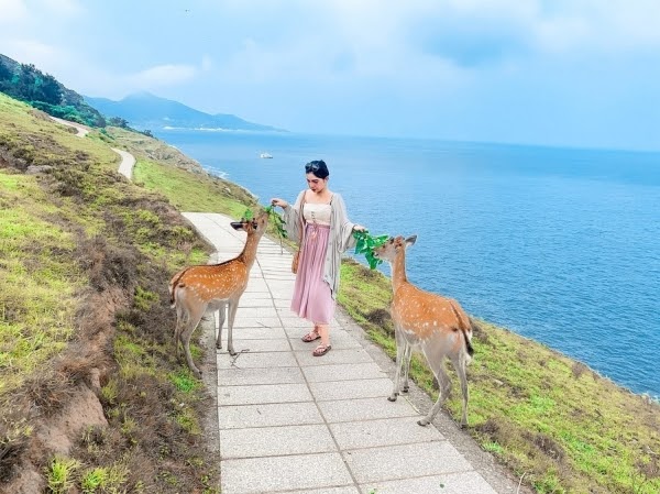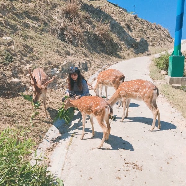 大坵島上隨處可見梅花鹿在山坡奔跑,悠哉的在叢林間散步,甚至不怕人、願意讓遊客親近,但導遊也提醒這裡的梅花鹿雖然溫馴,但還是有野性、長角的公鹿可能會攻擊人,還是保持一點距離比較好唷!