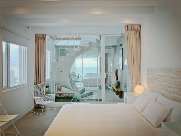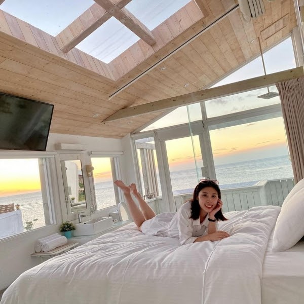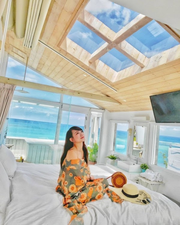 最受歡迎的全海景雙人VIP房位於三樓,房內採挑高無隔間設計,不僅坐擁超過180度景觀視野,上方玻璃天窗還能躺漂浮大床望藍天、夜晚再賞滿天星空,根本情侶度假首選房型,有夠浪漫!