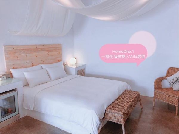 全海景雙人Villa位於一樓,以純白色調為設計,利用木質藤編打造而成,讓人有秒飛海島度假的錯覺,每個角落都是打卡點,讓你在房內就能大拍網美照啦!
