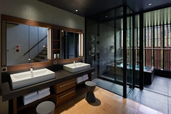 可容納兩位的樓中樓式標準客房。客廳及臥室位於同一樓層、另一層則為溫泉專用區,雖為積層堆疊的建築設計卻呈現Villa的度假空間感。