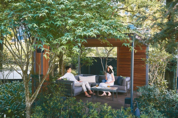 另一層的溫泉專用區除了特製的大型半露天溫泉浴池,泡湯後也能在寬大的沙發上坐臥休憩、享受奢華時光。