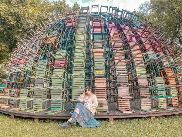 隱身於駁二特區微熱山丘旁的公園裡,這座裝置藝術外觀宛如巨大飛碟,是採用學校回收的舊椅子搭建而成,裡面每張椅子背後都寫著不同學校的名字,瞬間勾起了小編的童年回憶呢!