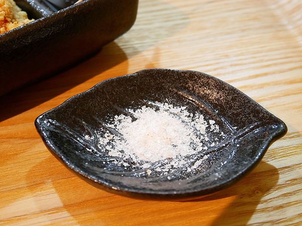 旁邊會附上頂級鑽石海鹽和招牌沾醬,