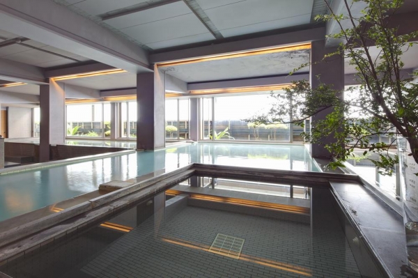 戶外露天的山泉水游泳池,深度由1.5公尺到3.5公尺,抬頭即可見到紗帽山,入住的房客可免費使用男女分開的日式大眾裸湯,泉質為陽明山發源的白磺溫泉,採用大片的落地玻璃景窗,加上庭園造景,別有一番風味!