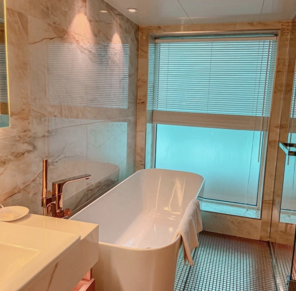 最奢侈的就是皇宮套房,根本就是把五星級飯店搬到船上了!包含了專屬的管家、皇宮餐廳、皇宮專屬獨立泳池!最頂級的皇宮庭院別墅大至25.7坪,在船上有這樣的享受,太CHILL~