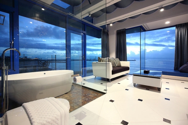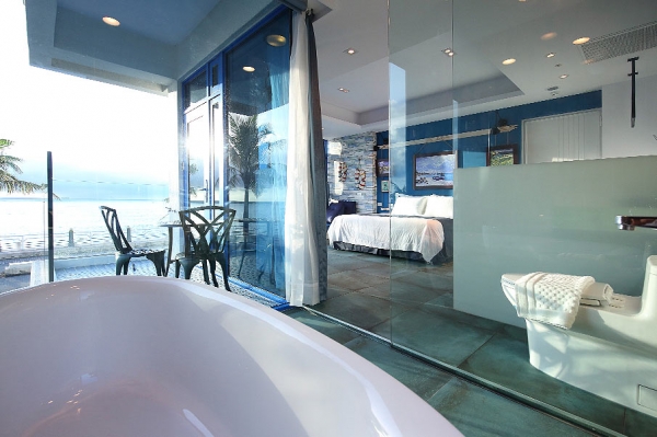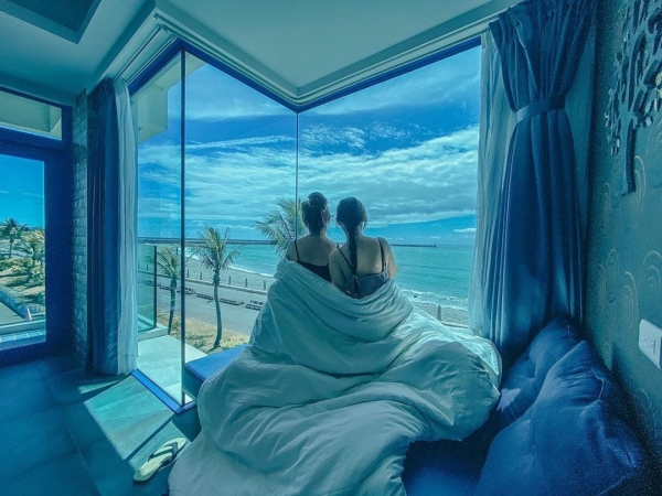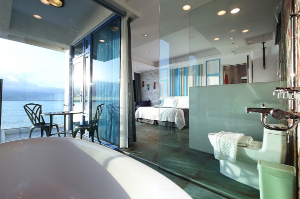 民宿共分為六層樓,裡面擁有各種特色質感房型,最吸睛的是採全景落地窗設計,超狂設計讓你誤以為自己睡在大海裡呢!