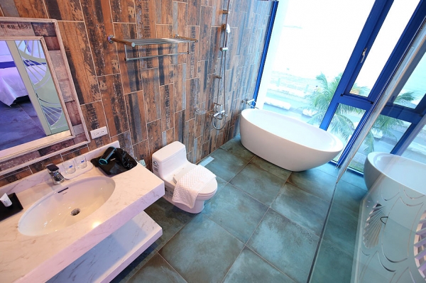 居高臨下的無敵海景,還有能一邊看海一邊泡澡的超讚浴缸,房內超大落地窗邊就是沙發床,可以不受干擾的愜意賞景度假!