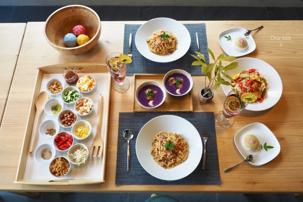 看看這早餐的菜色也太健康了吧!蔬菜的顏色繽紛,再搭配一杯清涼的飲品,夏日出遊絕對能感到幸福的早餐~也有提供泰式料理晚餐,不過需要額外付費喔!不分大人小孩皆為600元~
