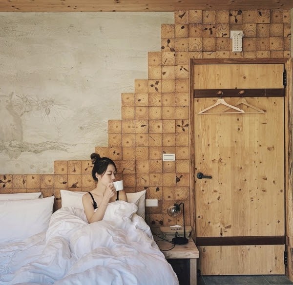 所有內部設計都統一原木與清水模的色調,靜謐又不失設計,給人很舒服又安心的感覺,喜歡清水模的旅客千萬別錯過這裡了!