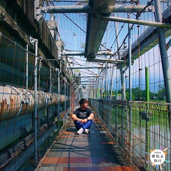 這裡最初的用意是作為銜接兩岸的通道,棧道表面採用木製、鐵製的混搭材質,四周圍架起類似水管鐵桿與鐵絲網的護欄,仔細看,還會發現有懸空的盆栽在外頭當作裝飾,然而經過多年時間,藤蔓株植也大量盤繞,讓這裡有種廢棄工業綜合另類荒野的美感。正因為設計特殊,才吸引許多廢墟攝影愛好者前來拍攝哦!