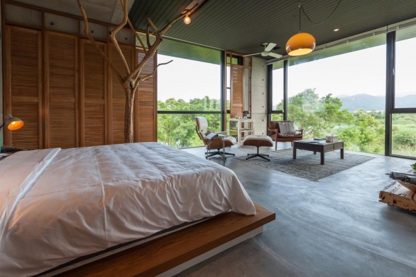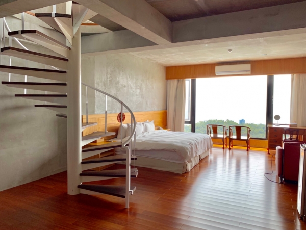 43會館以南洋島嶼元素打造慵懶的抒壓空間,後現代極簡風格恰好與VILLA設計衝撞出夢幻至極的寧靜美感。讓旅客不用出國就能享受身心靈的徹底洗禮。精緻的小陽台把陽光牽了進來,在早晨、在傍晚,躺在妳身上撒嬌、磨蹭。