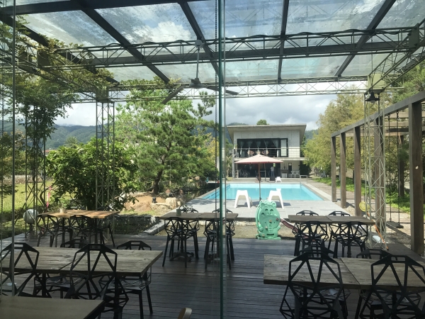 當您走進我們的大門,迎賓池裡的台灣水牛石雕親切的向您問候,挑高的鋼構通透大廳裡,豪邁的毛柿原木長桌絕對是視覺焦點,清水模與粉光牆面簡約清爽,原本山上的老樹,也成了創意家俱的木料。