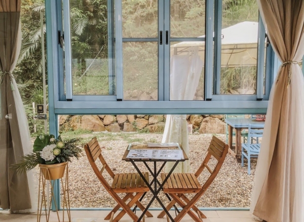 所有的透明玻璃都設有窗簾,包含浴室都有浴簾,完全不用擔心隱私不佳問題!入住每一處都讓人驚呼,彷彿置身在森林中!老闆會貼心準備DIY客家擂茶及手工麻吉製作、無菜單料理晚餐和精緻的手作早餐!