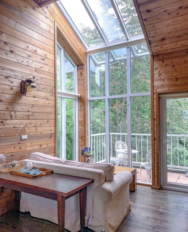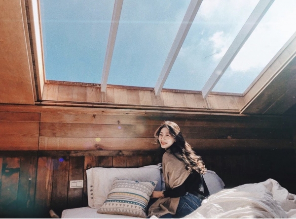 黃慶果園民宿裡,最難訂的房型就是這間,房內擁有透明觀星天窗!天花板上一大片的透明天窗,只要躺著就可以數星星,溫暖的陽光灑進,在充足的陽光下拍照,就可以拍出超美的網美照!