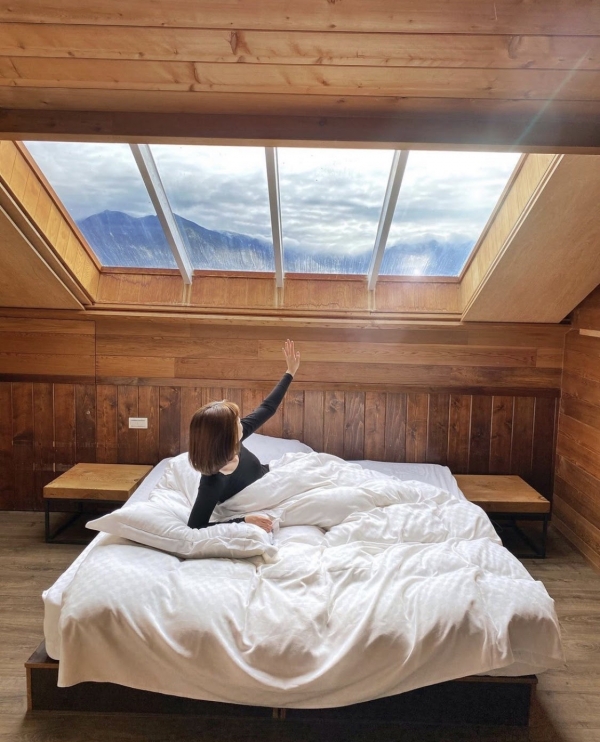 景觀四人房,兩邊窗戶 一邊是可以觀賞日出方向,另一邊則是日落!在房間裡就可以欣賞到這樣的景色太享受了!下午還可以到玻璃屋享用下午茶,整體cp值就是超高!