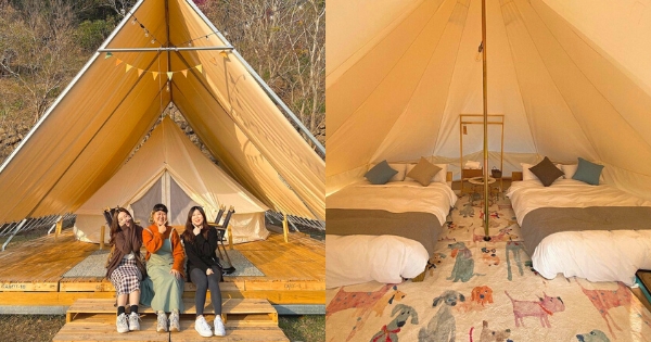 帳棚內布置的簡約可愛,閨蜜一起去旅行超適合!這樣夢幻的帳篷,還能眺望台中市景和夕陽!提供2張雙人裝、衣架、毛巾和牙刷,天冷也不用擔心還有暖氣!帳篷前面還可以起營火,讓整個園區變得更加溫暖浪漫!