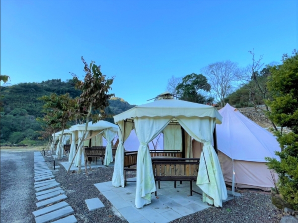 位於苗栗泰安的奢華野營區,緊鄰汶水溪畔,被譽為台灣最美的野奢溫泉營地,結合了一泊四食、星光酒吧、親子遊樂區,園區內還有最著名的「帳篷湯屋」,來露營還可一邊泡美人湯,同時遠眺山景自然風光,也有提供套房形式的湯屋,搭配咖啡館以及特色料理,給你極致享受!