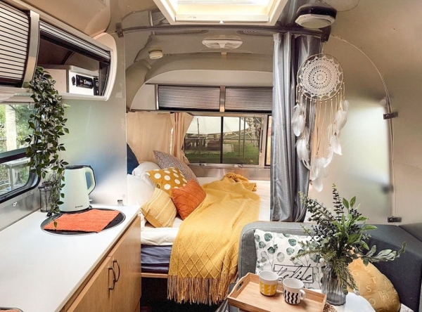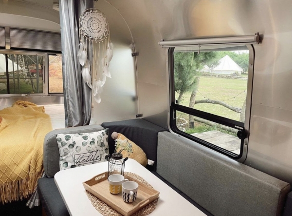 全區只有一台的美式露營車,內裝非常的精心裝飾!就在絕美大草皮旁,還有營火的點綴超浪漫!一泊二食的方式,從晚餐到隔天的早餐都可以吃到美味的餐點,來露營還有一種住飯店的感覺!