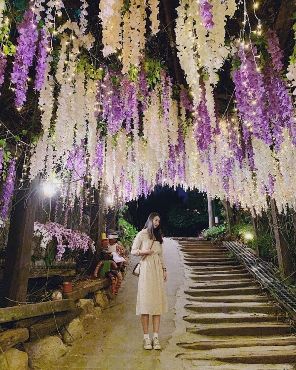 位於台南新化區一座由傳統農畜轉變成休閒型態的農場,園內設有繩索吊橋、高空滑車、SPA水療、三溫暖泡湯池及烤肉區等等設施,最吸睛的是這條夢幻紫藤花隧道,整體步道不長,但放上各種花來裝飾,畫面還是非常壯觀唷!