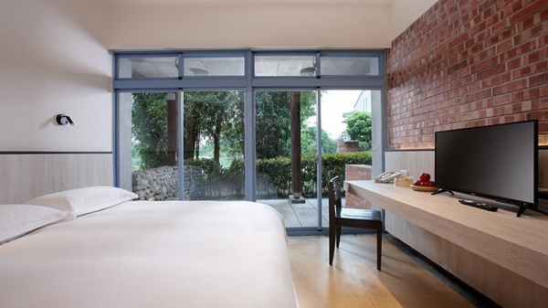 宜蘭傳藝老爺行旅占地有3.5公頃,打造閩式古厝建築群!懷舊的紅磚老屋,總共有六大住宿區域!整個園區非常的大,提著行李不用擔心,可以從大廳到房間叫高爾夫球車接送!
