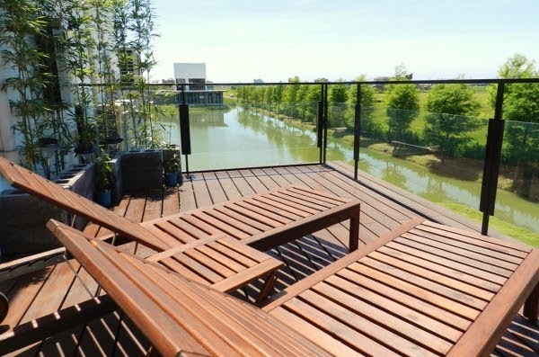 戶外還有超大私人露台,一旁也擺放了幾張桌椅及躺椅,讓人可以愜意地坐在這邊放鬆放空,享受美好的度假時光!
