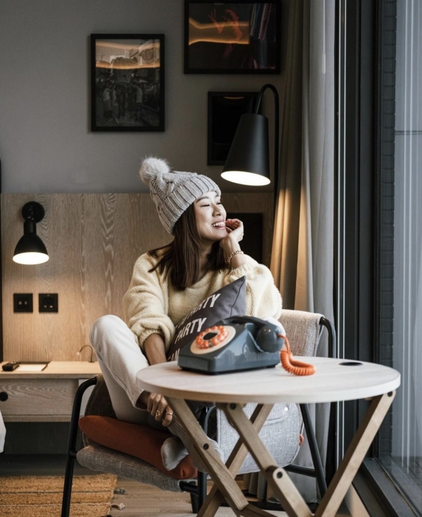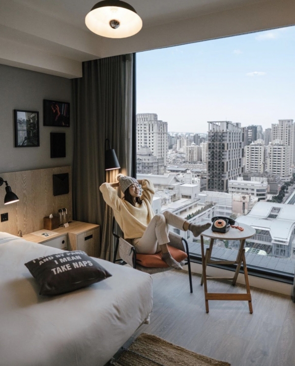 飯店的設計每一處都讓人驚艷,大廳擺設著台灣經典的回憶大同寶寶、黑松汽水及維大力!配合政府防疫措施,工作人員也戴上搭配飯店主題的桃紅色口罩!整個很有活力的氛圍,還有超爽隔天12點在退房!