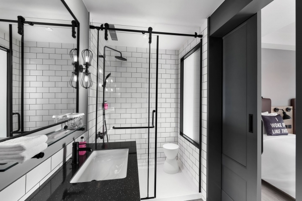 Moxy酒店只有提供三種的簡約房型,坪數雖然不大但擁有豐富的設備!以簡單舒適為主要的設計風格!並將非必要擺設的傢俱收納掛在牆上,讓需要的旅客可以自行取下來使用!