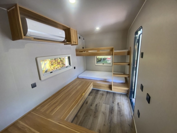房內設備有冷暖氣、桌椅、單人/雙人床墊,需要自備睡袋或棉被、枕頭!就算是住在野外,也跟在家一樣舒適,房間內沒有獨立的衛浴,公共衛浴設備就在露營車的旁邊!