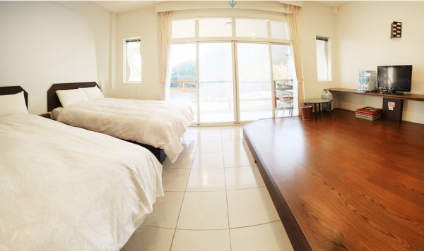 乾淨舒適的海景雙人房,陽台外就可以擁抱群山環繞的視野,與眺望遠方的太平洋;想欣賞台灣第一道的曙光只要踏上陽台就可以一覽無遺。