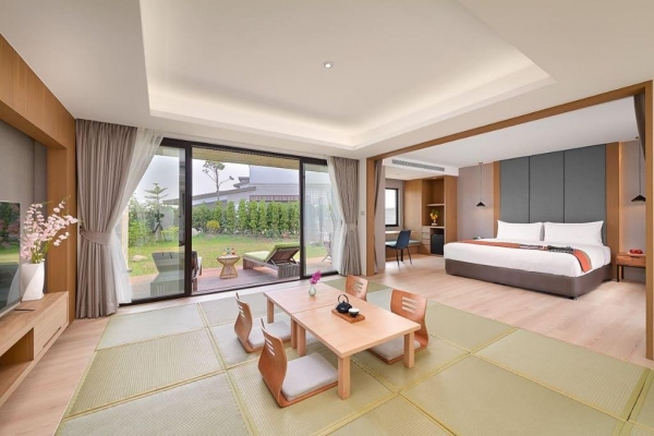 經典和式風格設計,欣賞日式庭園美景,感受時節變化之美,柔和的自然光讓整間客房更顯朝氣明亮,備有30坪的規格空間,寬敞的舒適客廳及空間氣派的主臥室及浴室,放下紛擾的都會雜絮,悠閒享受假期時光。