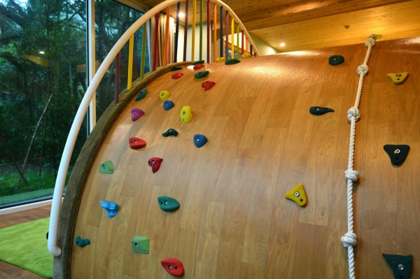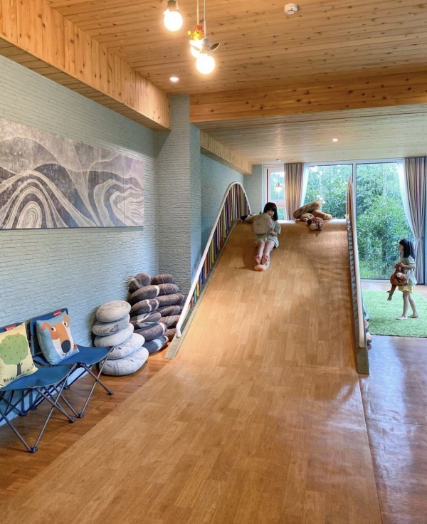 寬闊的房間,這兩間親子房是大家都搶訂的!房間內就有小朋友最愛的溜滑梯,睡在城堡內超夢幻!另一間則有攀岩設施還有露營風帳篷!