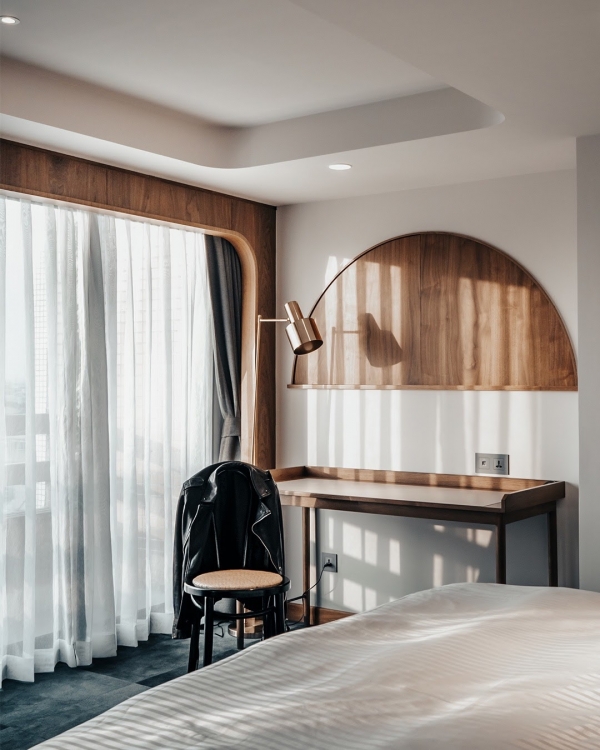 主色調以藍綠色及古銅色為主,再搭配木質家具營造出溫馨氛圍,完全提升了老飯店的質感!外觀雖然老舊,但走進去卻是另一個超時尚飯店,有些房型可以直接眺望臺南市景,還有最具代表性的赤崁樓!