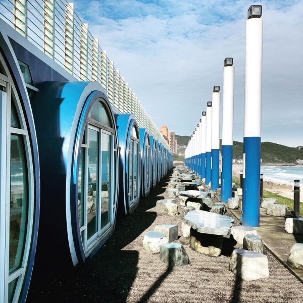 在沙灘旁還有一整排的水管屋,超可愛又超吸睛,其實他是烤肉區,怕曬或怕風吹的人可以在水管屋內烤肉,想近距離看海聽海浪聲的人也可以在室外烤,來這裡真的吃喝玩樂全包!
