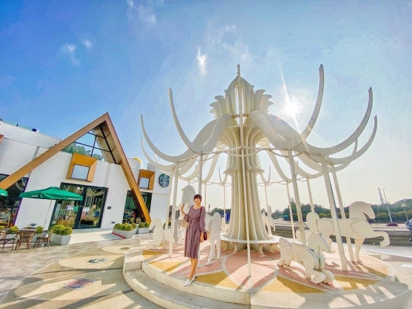 全台最夢幻的星巴克,童話風浪漫巨大的白色旋轉木馬,大家來到休息站不是休息,而是來尋找這座超可愛的旋轉木馬!